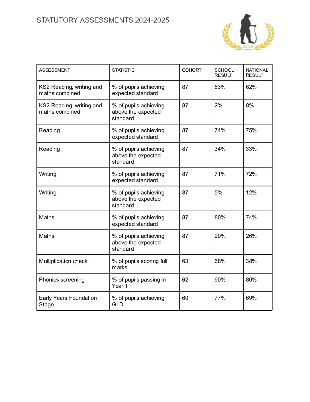 Our statuatory results which we share below have improved this year and we celebrate the children’s hard work and look forward to seeing this continued momentum.